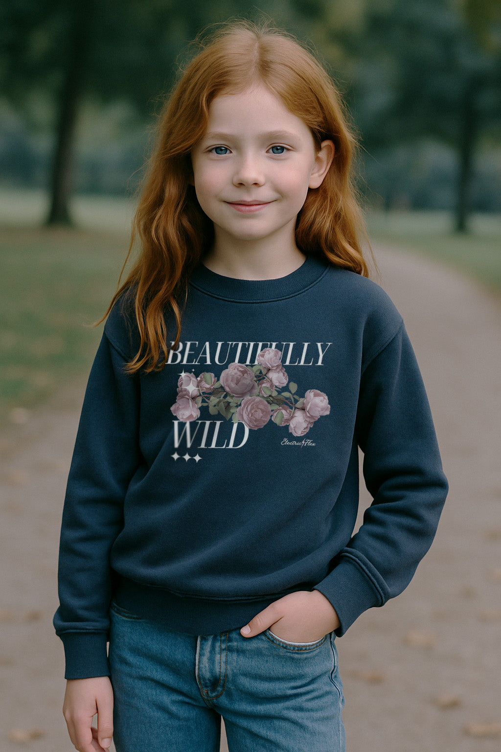 Soft, bold, and full of heart—just like her. This cozy sweatshirt features lush pink peonies on a deep black backdrop, with the words “Beautifully Wild” in crisp white lettering. It’s a celebration of girls who think differently, feel deeply, and aren’t afraid to stand out. Whether she’s creative, curious, emotional, or all of the above, this piece is made for the kind of wild that was never meant to be tamed.