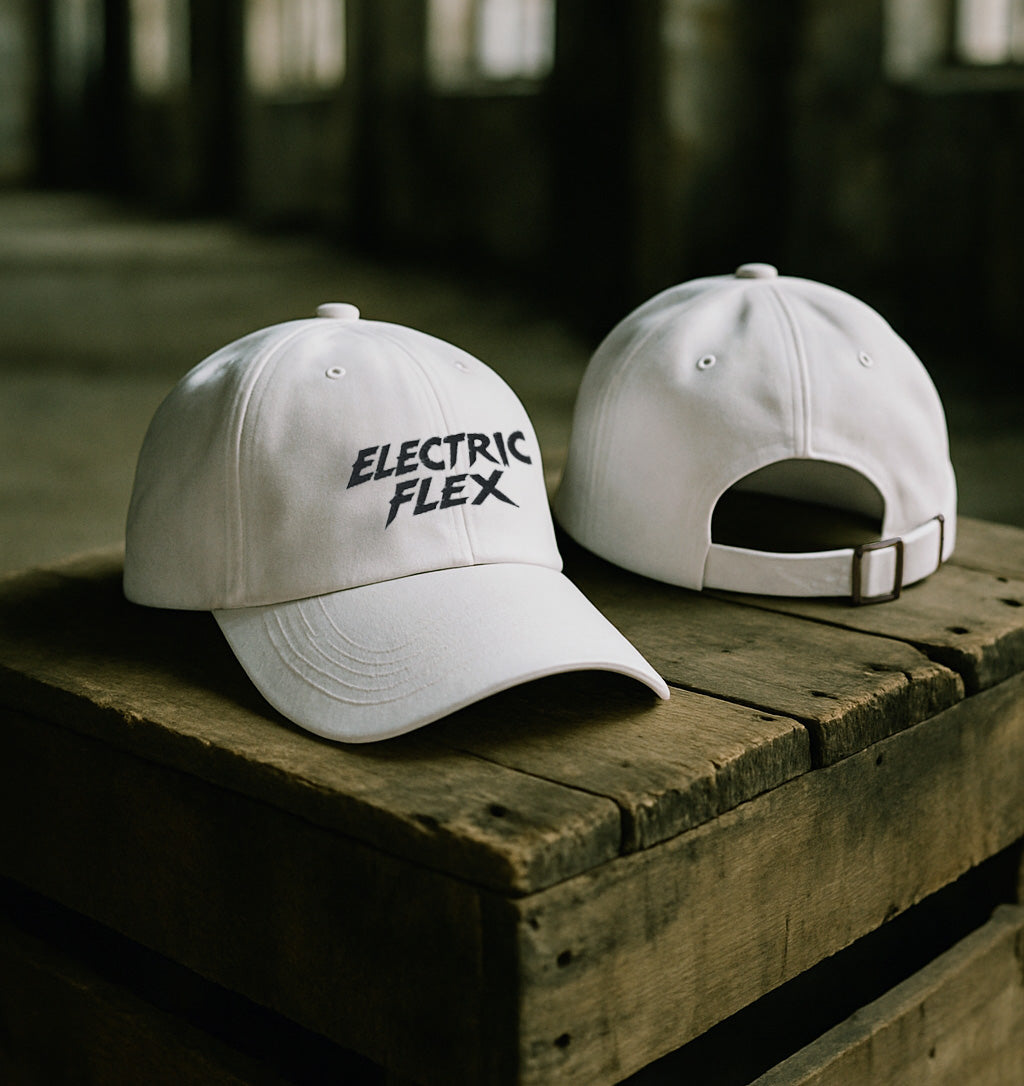 Understated. Unapologetic. This dad hat features a black embroidered Electric Flex logo—for those who like to keep it low-key but still make a statement. With a soft, unstructured fit and classic curved visor, it’s built for everyday moves with quiet confidence.