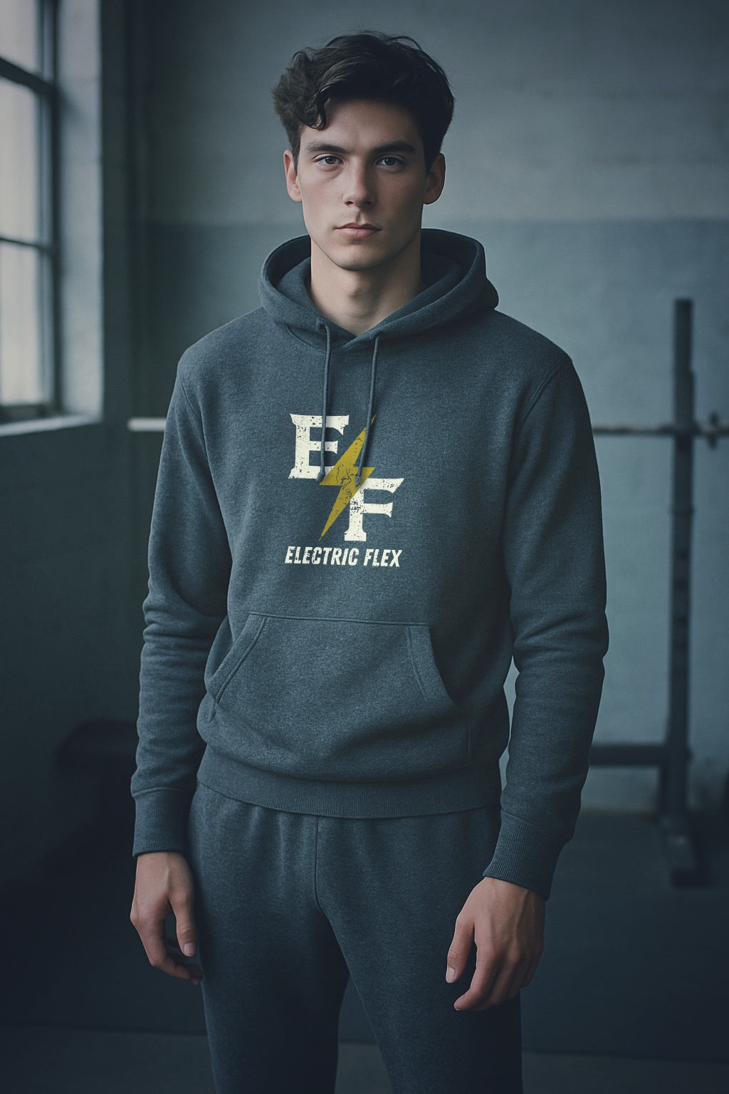 Your new favorite hoodie—built for comfort, charged with grit. Featuring the EF lightning logo in a grunge print, this classic streetwear staple delivers softness with serious edge. The heavyweight cotton blend, front pouch pocket, and structured hood make it perfect for chilly mornings, post-gym layers, or everyday flex.