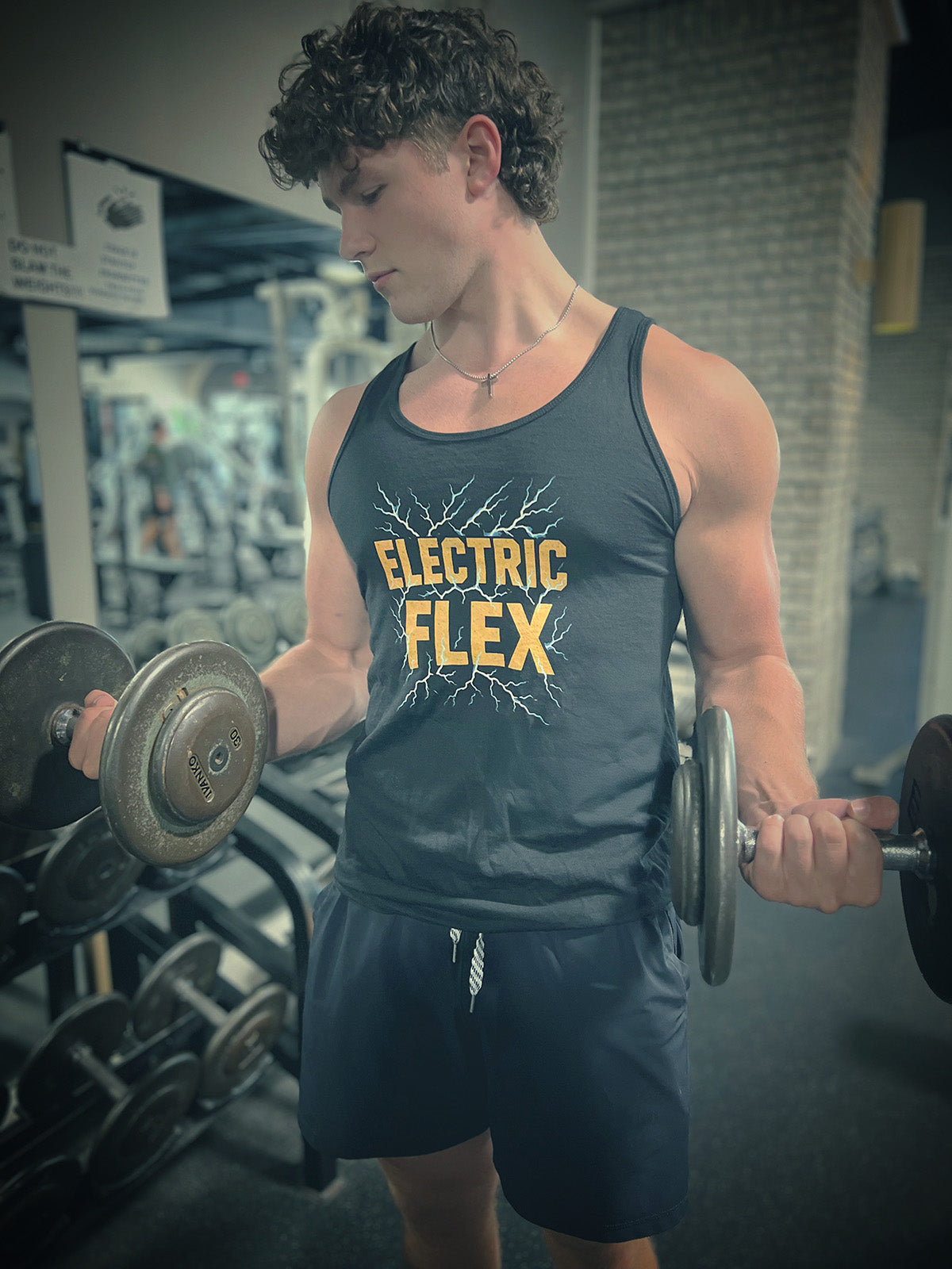 This ultra-soft, high-quality tank features bold lightning bolts and the Electric Flex logo—designed for those who bring the energy wherever they go. Whether you're lifting, lounging, or lighting up the street, this timeless piece keeps you cool and comfortable.