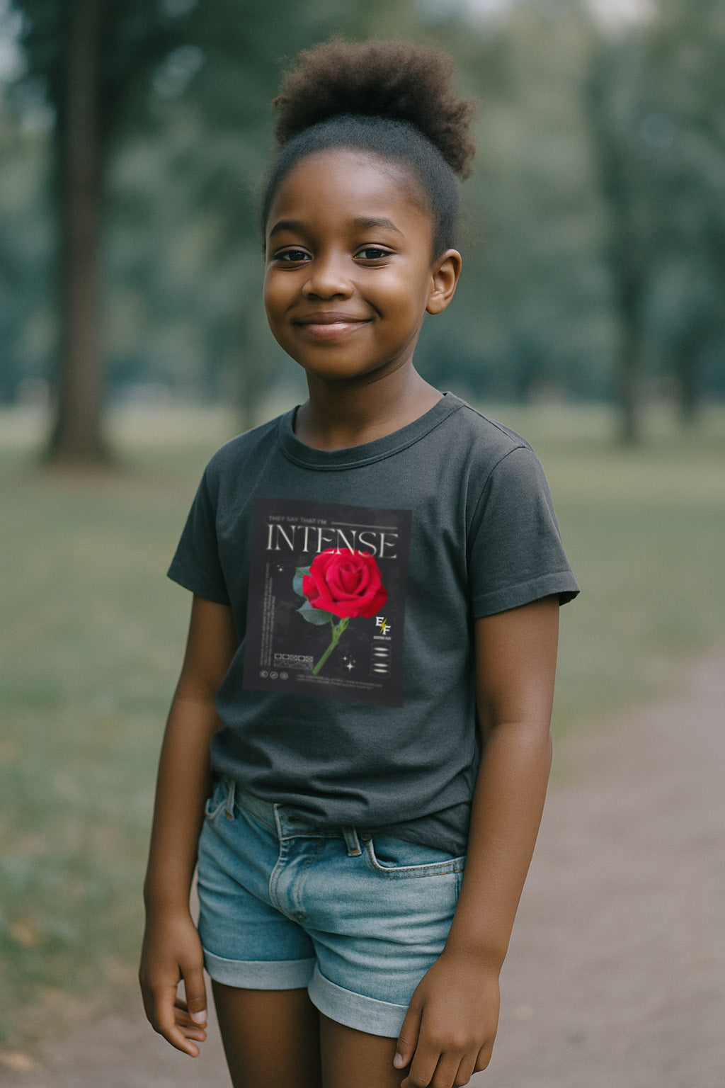 This classic unisex tee celebrates kids who feel big, think fast, and live out loud. With a bold rose graphic and a message that redefines “intense” as focused, fearless energy, it’s made for those who aren’t here to blend in—they’re here to blaze trails.
