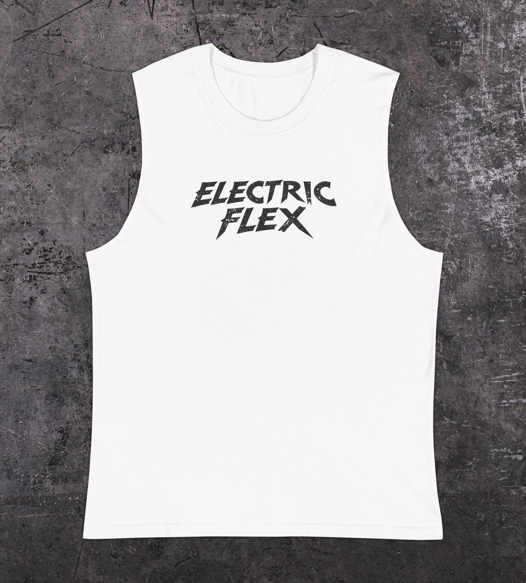 Turn up the voltage. This sleeveless muscle tank features the Electric Flex lightning logo in a gritty grunge print—clean, raw, and ready to move. With ultra-soft cotton, a relaxed fit, and wide-cut armholes, it’s made for lift days, leg days, and laid-back days alike. Throw it on, flex hard, and keep the energy high.