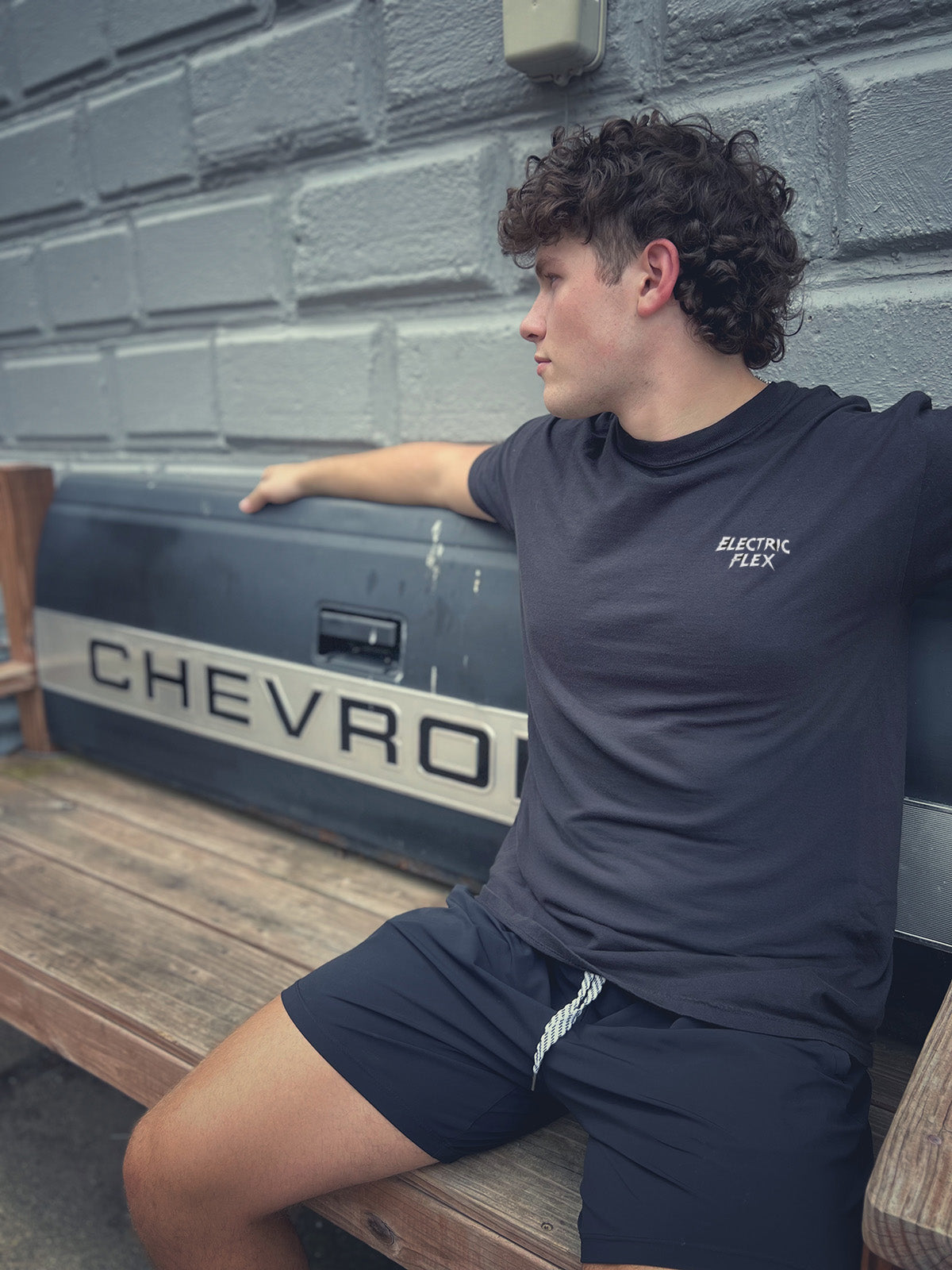 Low-key logo. High-voltage energy. This men's tee keeps it minimal with the full Electric Flex logo printed in the chest zone—no pocket, no extras, just a subtle nod to strength in motion. Made from 100% premium, US-grown, ring-spun cotton for softness and breathability with a structured fit that wears just as well in the gym as it does out of it.