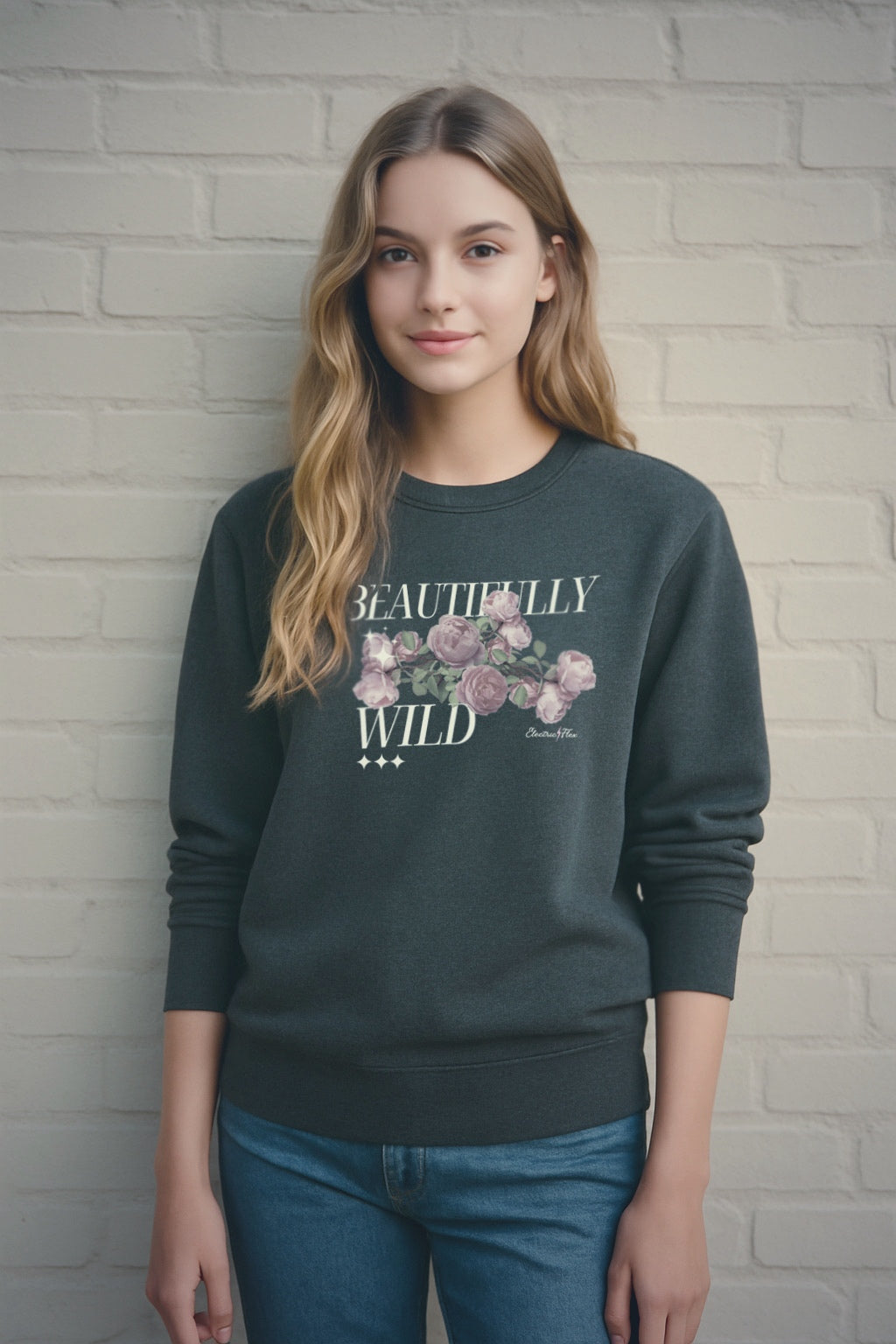 Soft, striking, and unapologetically bold. This sweatshirt features lush pink peonies set against a deep black background, with “Beautifully Wild” in crisp white lettering across the front. It’s a tribute to fierce femininity and the beauty of thinking differently—whether you’re neurodivergent, creative, emotional, or all of the above. With a cozy fleece interior and flattering fit, it’s perfect for layering or standing out on its own.