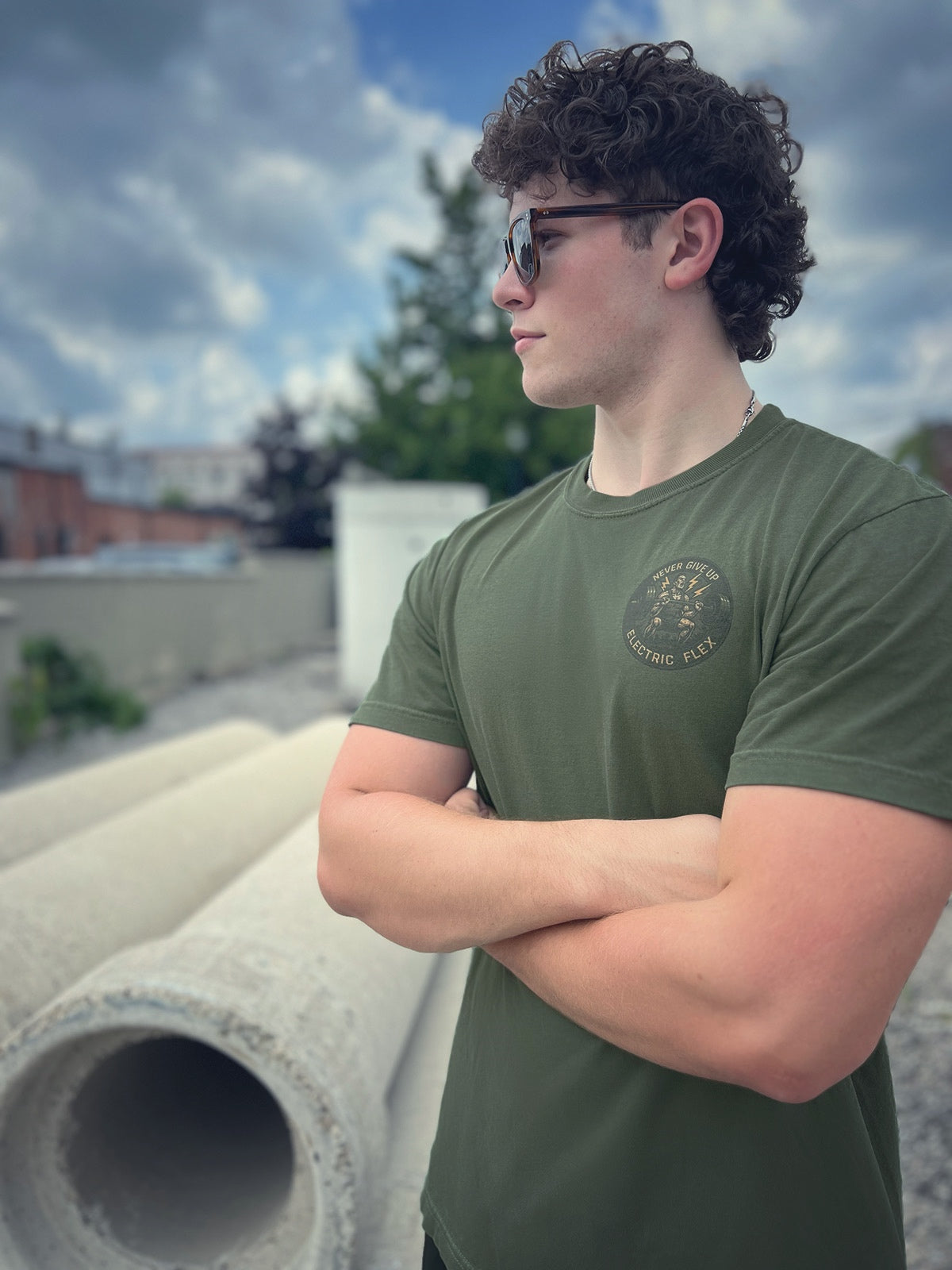 Power up your look with this premium tee featuring a weightlifter patch on the front pocket area that looks embroidered but isn't. Whether you're hitting the gym or just repping relentless determination, this shirt brings major strength and serious style.