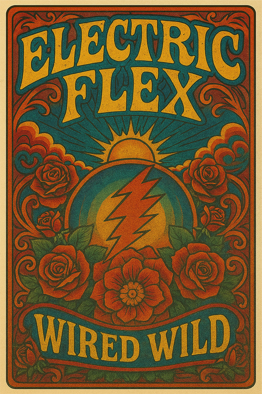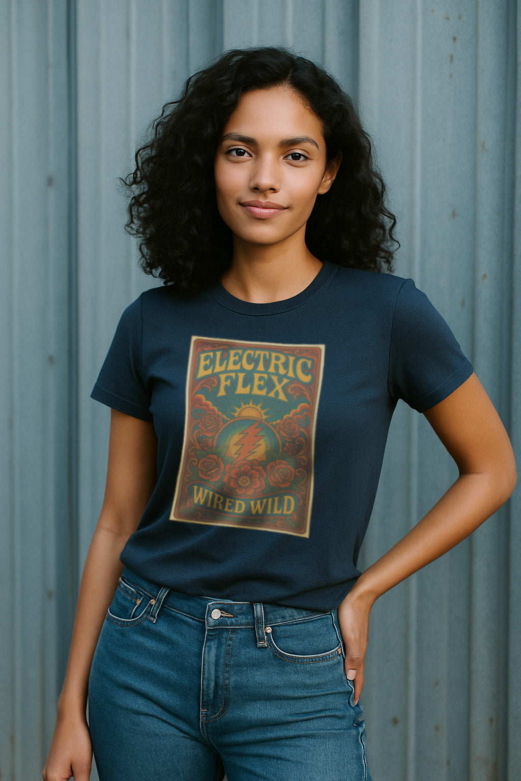 This women's tee brings serious retro energy with a vintage-inspired front print that says “Electric Flex” and “Wired Wild”—surrounded by roses, a blazing sun, and a crackling lightning bolt. The semi-fitted silhouette skims your shape for a flattering, not-too-tight feel, while the soft, breathable cotton makes it a go-to for everything from laid-back weekends to layered looks.